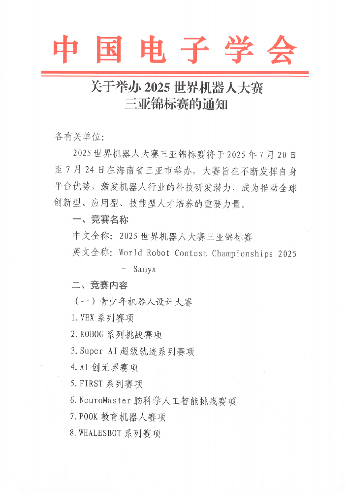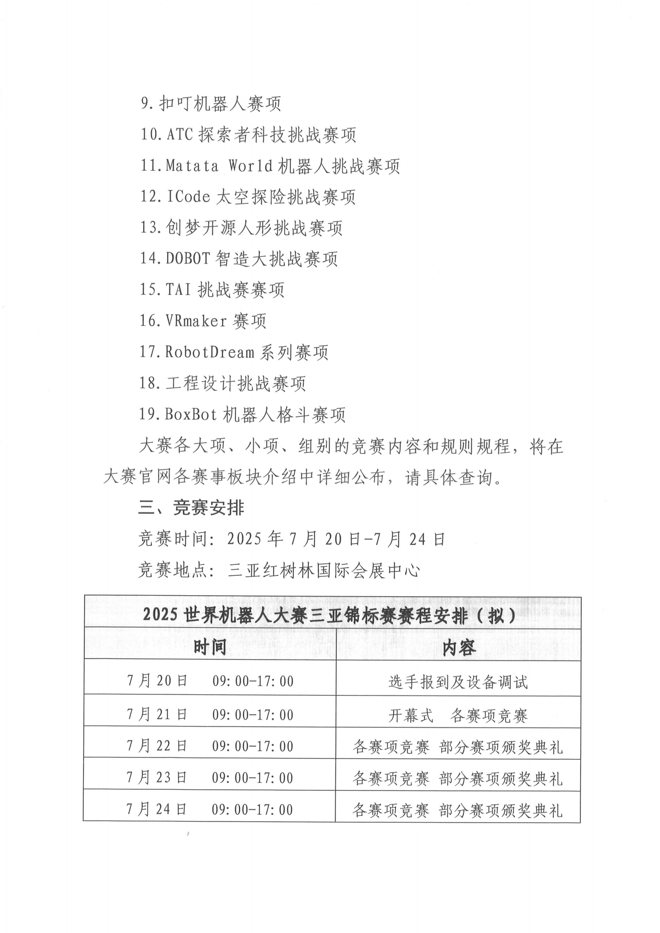 關于舉辦2025世界機器人大賽三亞錦標賽的通知