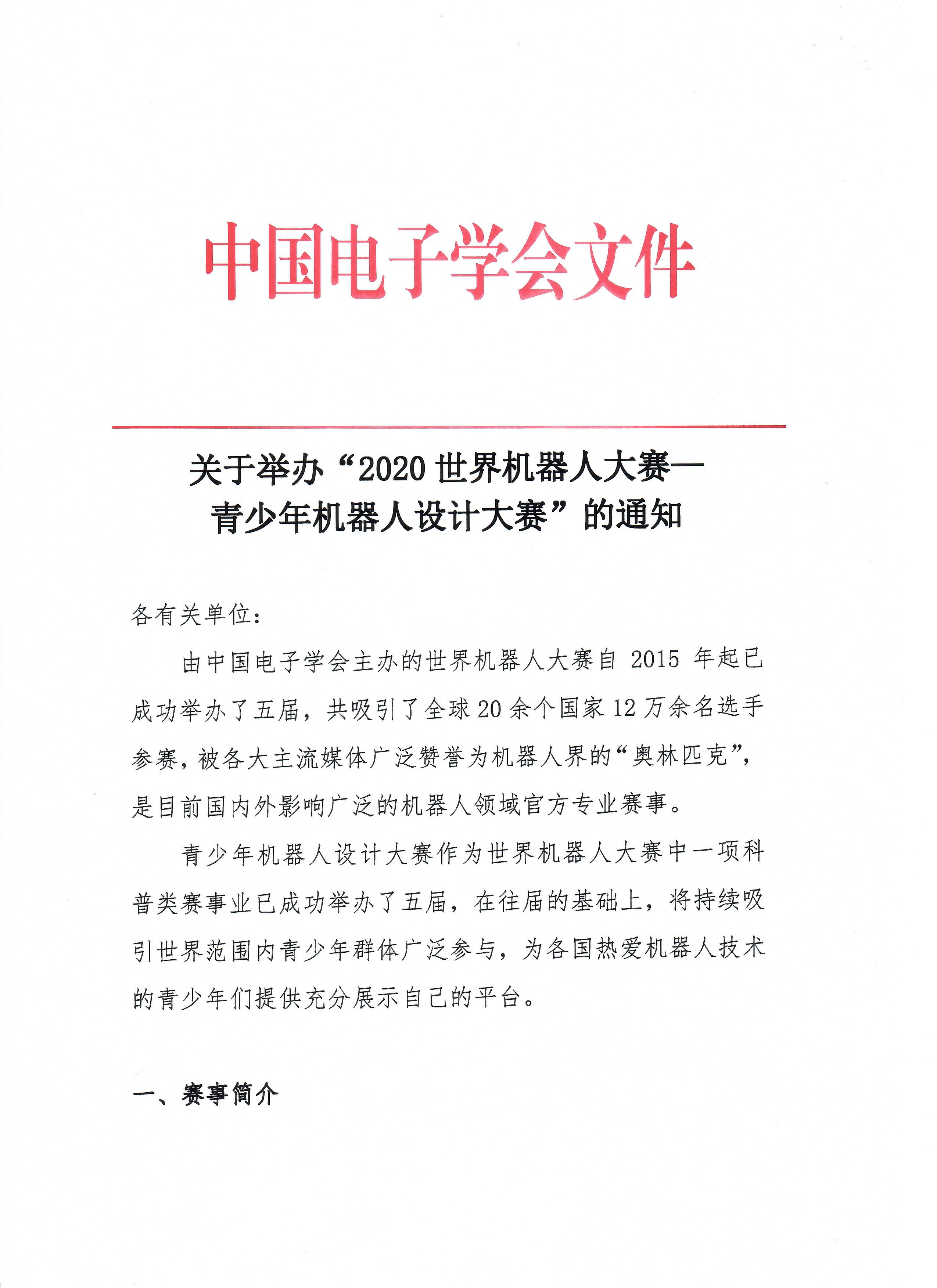關于舉辦“2020世界機器人大賽—青少年機器人設計大賽”的通知