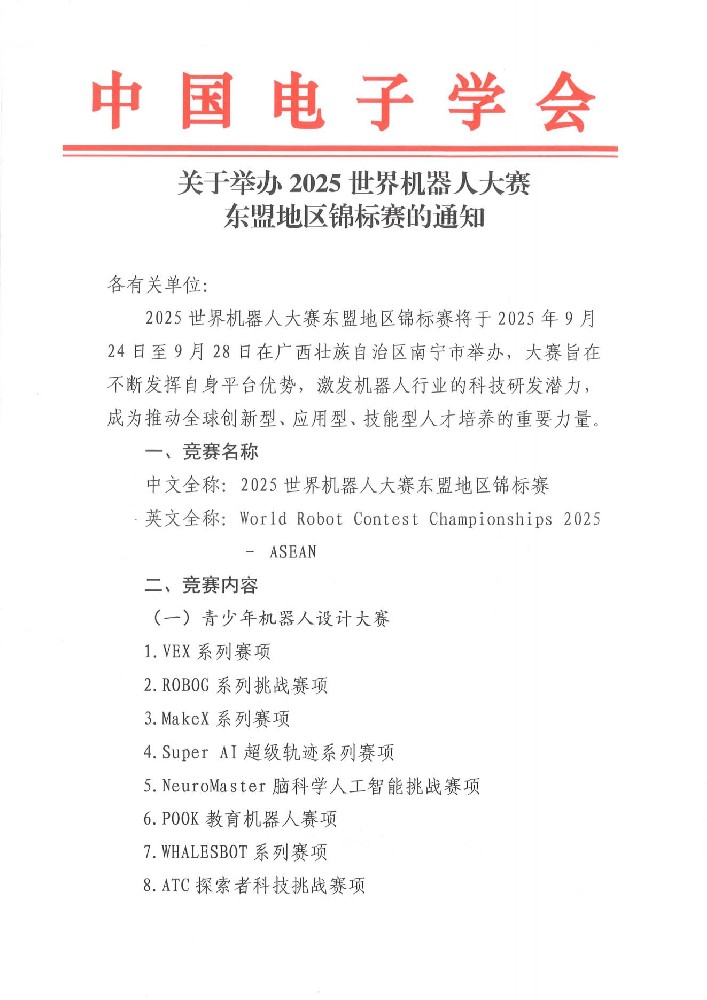 關(guān)于舉辦2025世界機器人大賽東盟地區(qū)錦標賽的通知