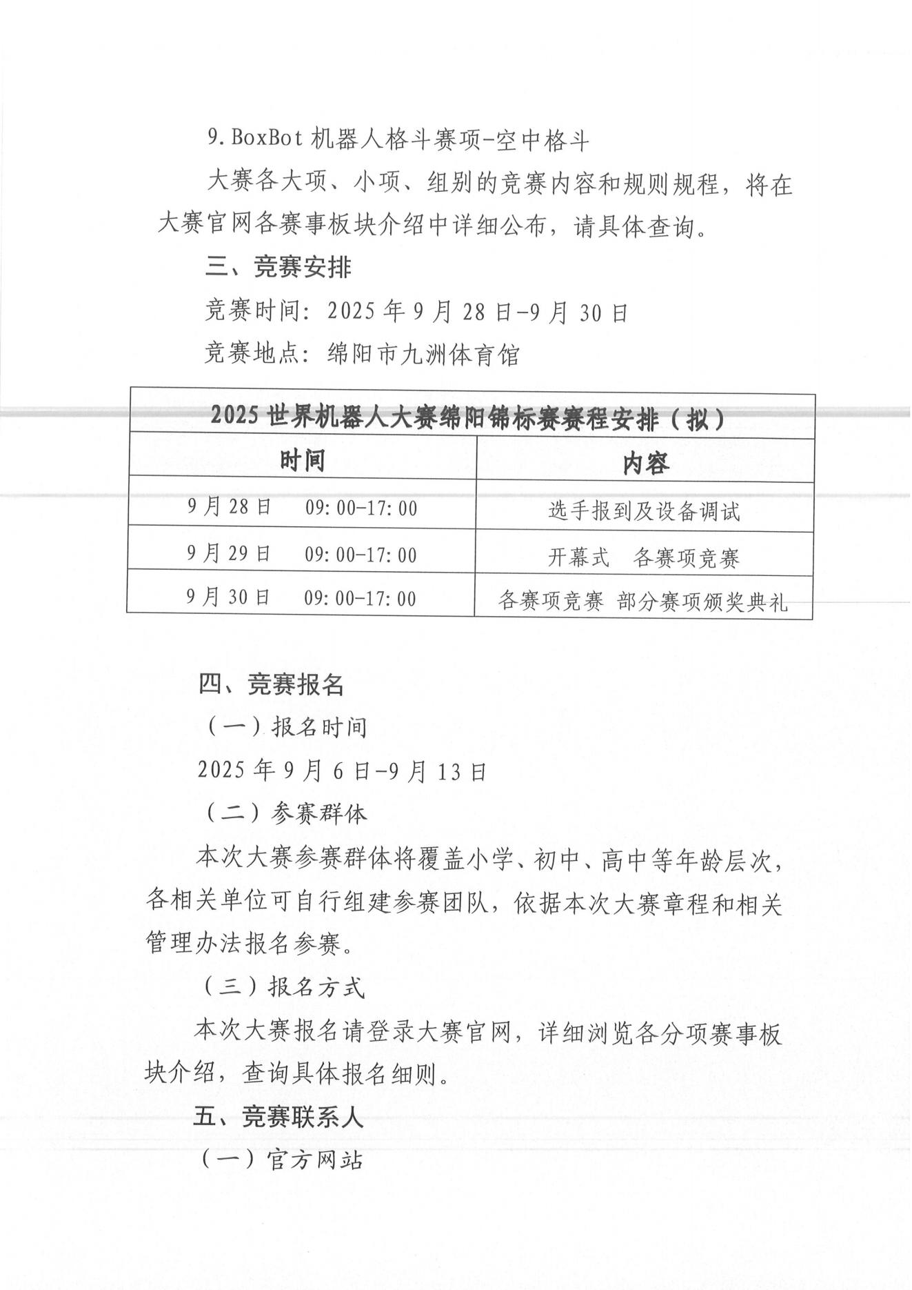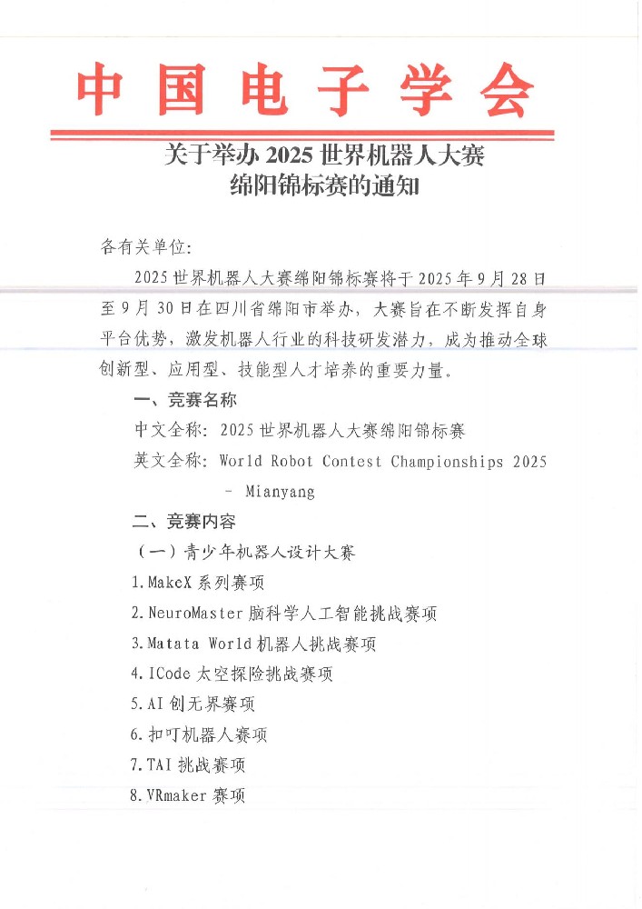 關于舉辦2025世界機器人大賽綿陽錦標賽的通知