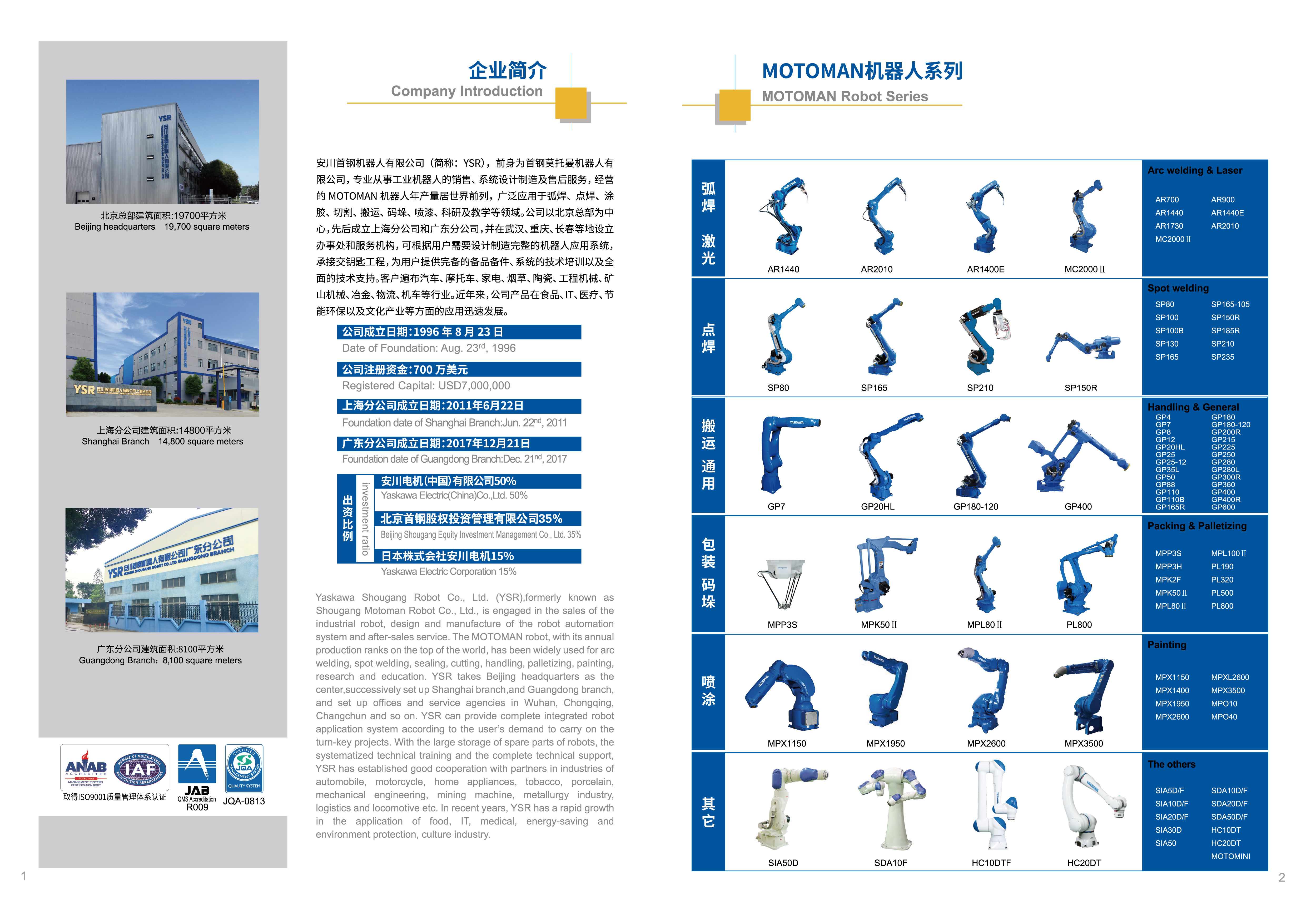 安川首鋼機(jī)器人有限公司(簡(jiǎn)稱YSR)具備全球領(lǐng)先的機(jī)器人技術(shù)和強(qiáng)大的機(jī)器人系統(tǒng)集成能力,擁有國(guó)內(nèi)規(guī)模最大的專業(yè)人才隊(duì)伍,具有一流的設(shè)計(jì)研發(fā)和制造能力。先后成立上海、廣東、武漢、重慶、長(zhǎng)春等分公司,搭建立足全國(guó)的銷售及服務(wù)網(wǎng)絡(luò)。公司產(chǎn)品涉及弧焊、點(diǎn)焊、噴涂、切割、搬運(yùn)、研磨、科研、教學(xué)等領(lǐng)域,尤其是在機(jī)器人應(yīng)用的重點(diǎn)領(lǐng)域汽車(chē)零部件制造業(yè)具有強(qiáng)大的技術(shù)先進(jìn)性和很高的市場(chǎng)占有率。 截止目前,YSR共獲批國(guó)家軟件著作權(quán)31項(xiàng)、國(guó)家專利98項(xiàng),其中發(fā)明專利10項(xiàng),實(shí)用新型專利88項(xiàng)。 近年來(lái)公司擁有“高新技術(shù)企業(yè)”、“中關(guān)村高新技術(shù)企業(yè)”、“高質(zhì)量發(fā)展百?gòu)?qiáng)企業(yè)”、“智能制造頭部企業(yè)獎(jiǎng)”等眾多榮譽(yù)稱號(hào)。