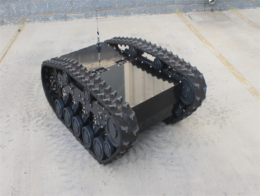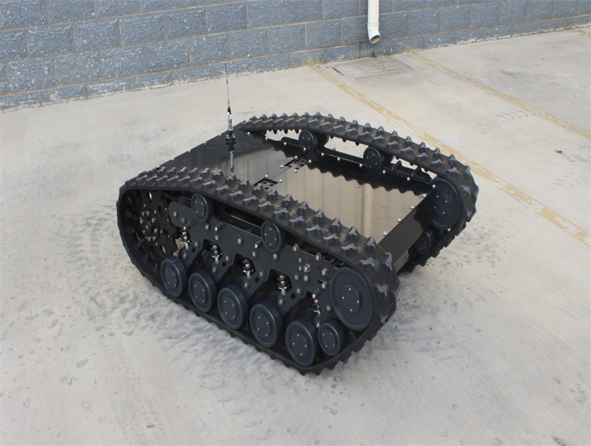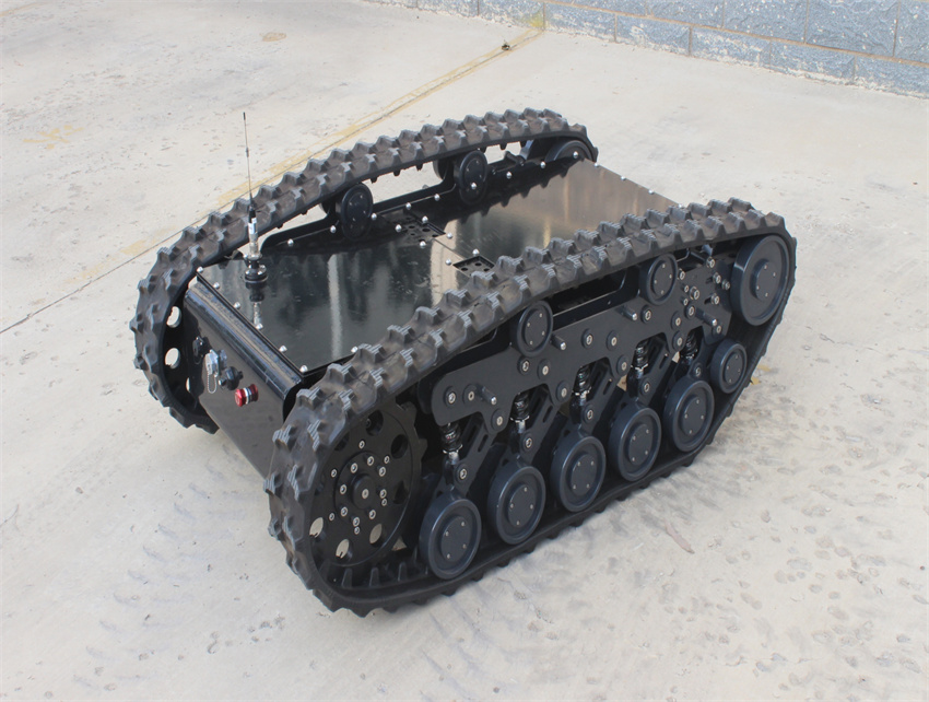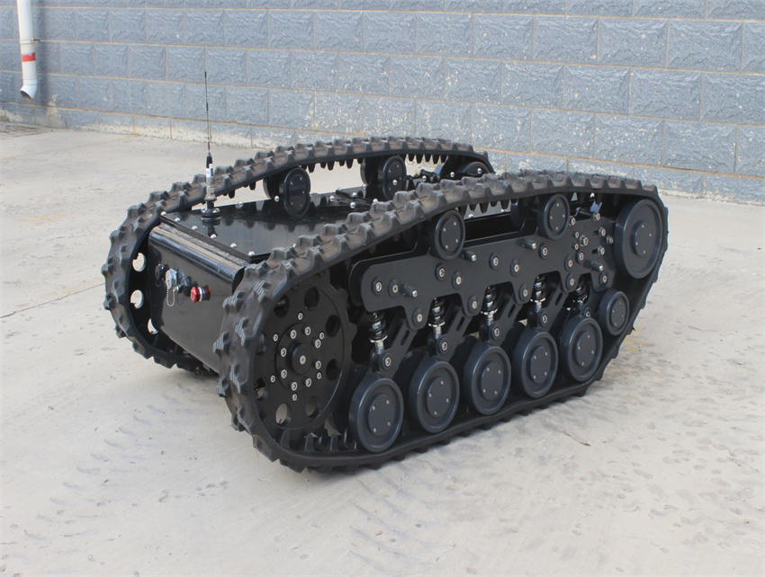 獨特的履帶懸掛防護系統,更好的適應惡劣路況,避免砂石、灰塵進入潤滑軸承,提高壽命;插齒式驅動輪結構,使得驅動輪與履帶緊密咬合,避免履帶與驅動輪的脫落。防護型懸掛系統配合插齒式驅動輪系大大提升了履帶式行走系統在復雜惡劣環境的適應性